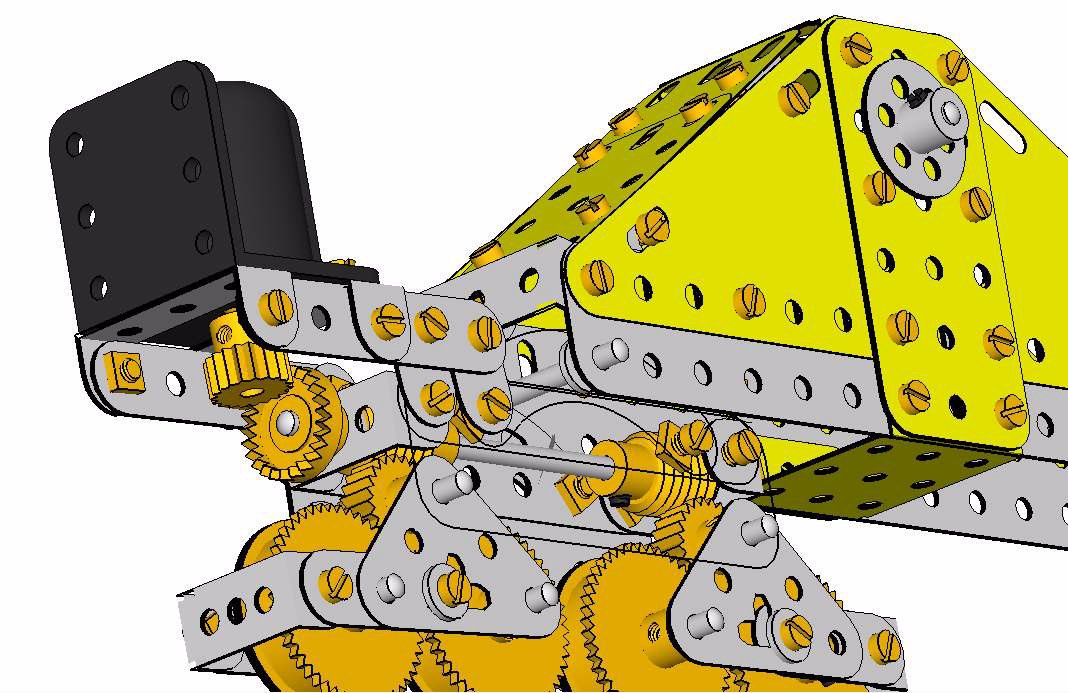 So, some research on the internet followed, together with conversations with other Meccano crane builders, and the first signs of a new crane begin to emerge. Ultimately it should be around 5ft tall. What sets the scale? Well, apart from the obvious availability of parts, it is usually the round bits which one can’t change like the swivelling turntable or the wheels. You want flanged wheels? Unless you make up unusual versions you are basically limited to the small 3/4″ wheel or the larger 1 1/4″ option. Now start doing the maths – four set of bogies, each with 8 wheels arranged in pairs on floating mounts so that they are all in contact with the rails at any one point.