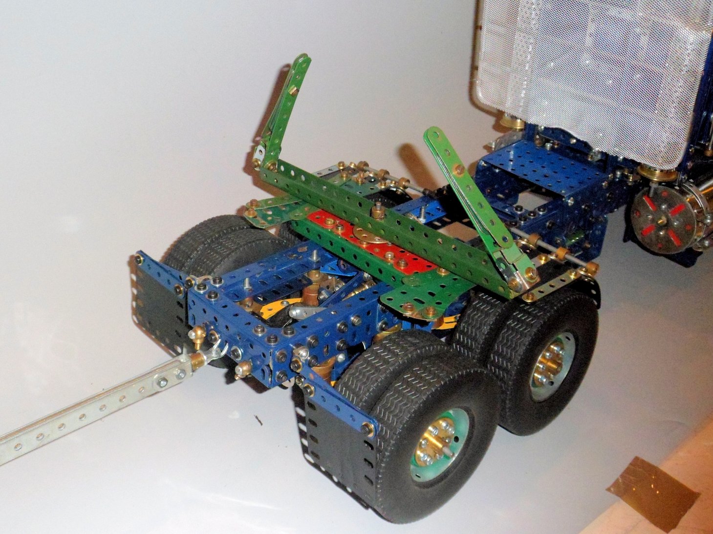 I said there’d be more! When I put up a picture of my latest model, a rear bogie for a logging trailer, I promised the front end would be next. Of course, there’s not much point in that without a truck to mount it on – so here is the truck as well, a Kenworth in dark blue. Just a taster – better photos of the truck in due course.