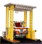 Well, there was certainly a GMC in that convoy of trucks, (driven by “Pig-Pen“, haulin’ hogs) but possibly the driver didn’t look as cheerful as the one in my latest diorama! But this is the latest edition to my own personal convoy. There will be more shots of the truck in due course, but for now it is set in context by a generic multi-lane toll booth, built using a mixture of Meccano, Stokys and Erector. Cousin-systems, of course, they all use a half-inch module and work together very well.