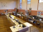 There they joined various railways models, layouts and memorabilia brought by friends and members of the church. We saw station signs and notices, lengths of railway track, lamps, literature, model layouts, military dioramas, scale rolling stock and much more. Children tried their hand on a Meccano trebuchet and a radio-controlled car and were delighted by such a range of models on show.