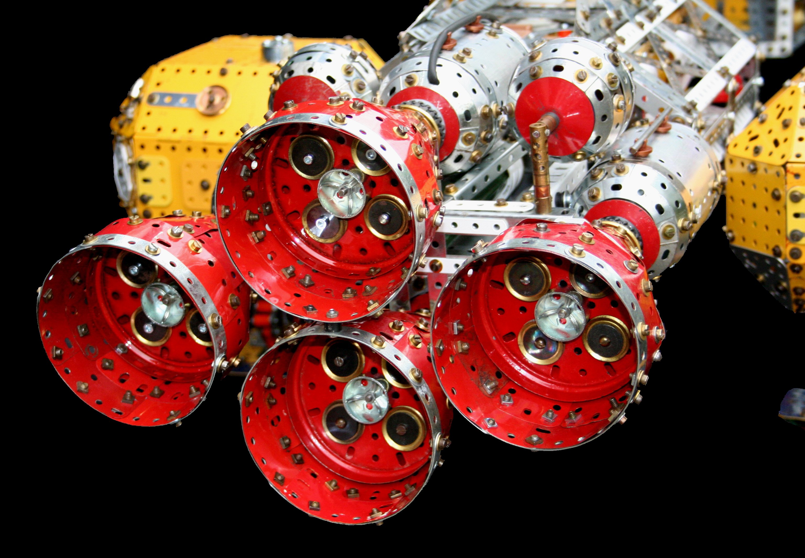 Having worked on the cabin of our spaceship it was obviously time to head to the other end and do something about the engine bay. Four large engine nozzles (fusion reactor driven, apparently!) plus the ancillary tanks, four spherical and four elongated with spherical ends. Quite a challenge in this medium! Each sphere worked out to about an hour’s construction.