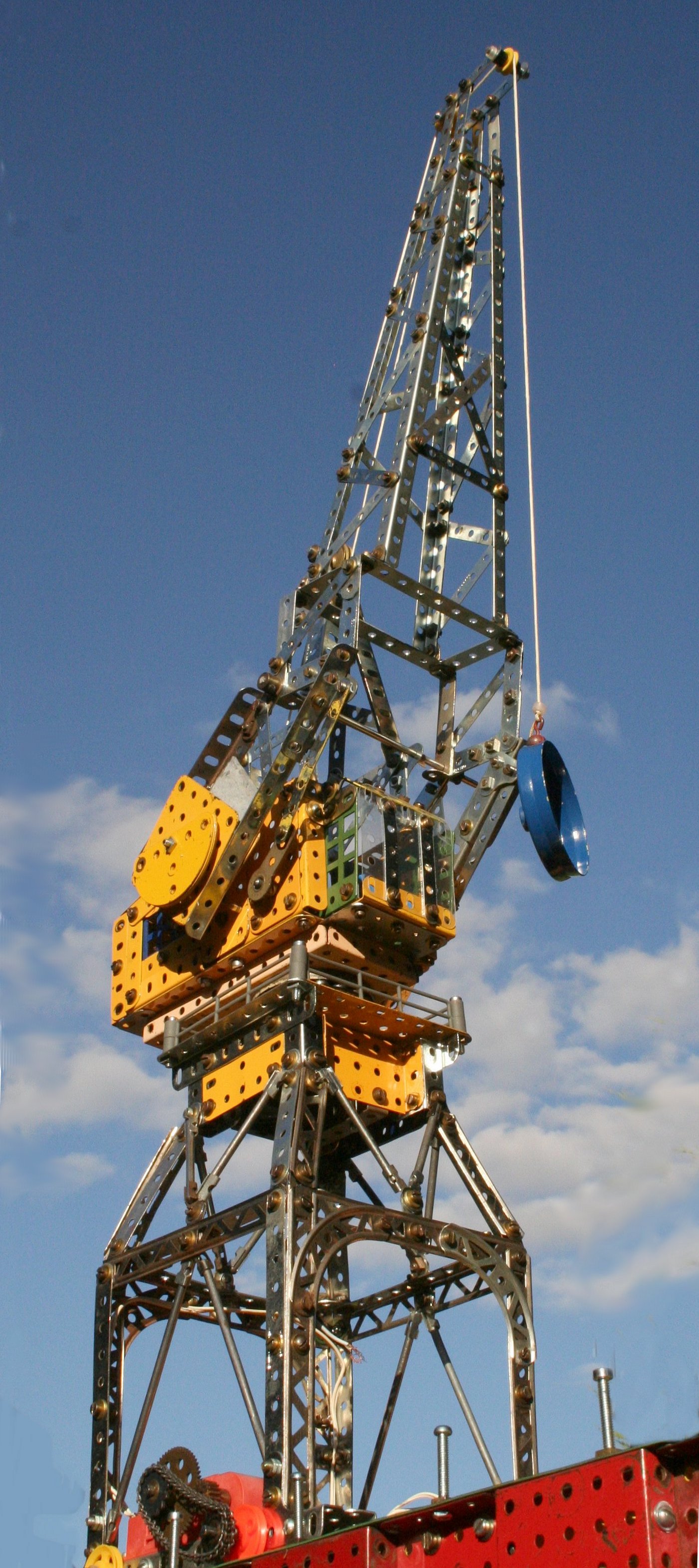 …. of course, a dockside crane really ought to be able to run on track. Some time ago I acquired a number of lengths of 0-gauge track and it seemed a good idea to use them on this project, so here we go: Our crane is now equipped with a pair of MR French motors which drive bogies which fit neatly on this track which bolts conveniently to a “dockside”.