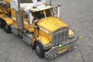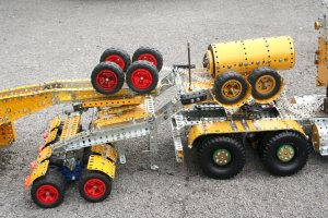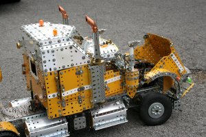 My version is almost entirely Meccano, but a few pieces of Erector and Stokys add some decoration and model die-cast cars added an idea of scale.