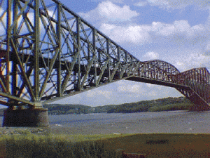 According to Wikipedia the Quebec Bridge is a road, rail and pedestrian bridge across the lower Saint Lawrence River between Sainte-Foy (since 2002 a western suburb of Quebec City) and Lévis, Quebec, Canada. The building project failed twice, at the cost of 88 lives, and took over 30 years to complete.